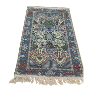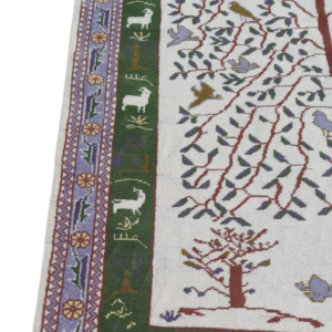 Portrait d’une femme, brodé à la main avec un fond en peinture, encadré en doré et protégé avec de verre
