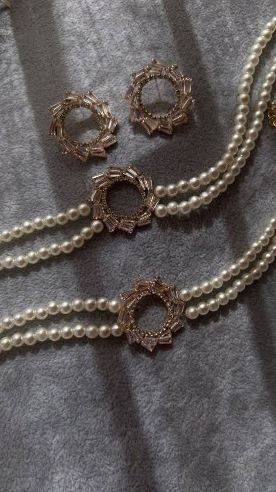 Parure de perles à double rang sublimée par un cercle de cristaux étincelants