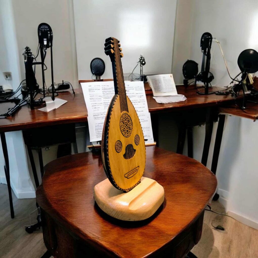 porte-casque audio (headphone stand) en forme d’oud arabe (luth oriental)