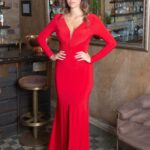 Chaque aspect de cette robe a été minutieusement pensé, depuis le luxueux tissu en crêpe jusqu’à sa teinte captivante de rouge. Les manches longues apportent une touche de grâce et de sophistication, tandis que sa coupe ajustée mettra en valeur votre silhouette de manière flatteuse.