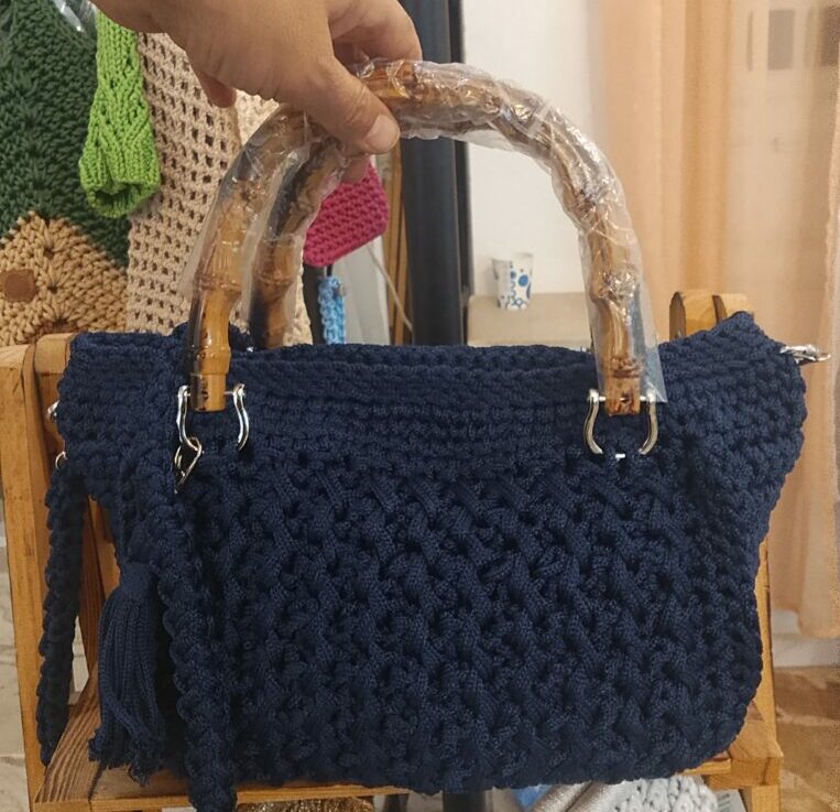sac crochet en bleu