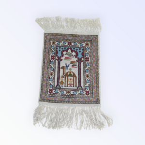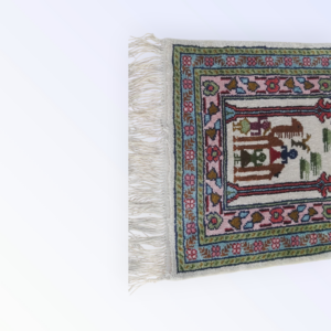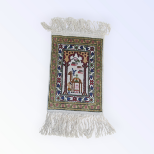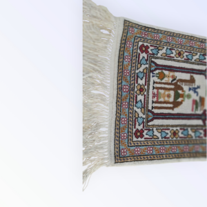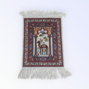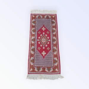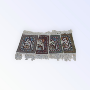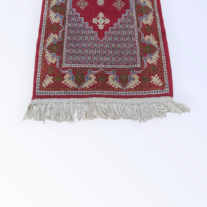 tableau “al shahadaten” en rouge et noir brodé sur la toile de jute avec la technique de point de croix en style Kufi avec du fil coton